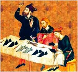 En la Edad Media, los gremios de los zapateros determinaban sus propios códigos y observaban su cumplimiento de forma muy estricta. Un gremio era esencialmente una asociación de productores o comerciantes que se agrupaban para defender sus oficios e intereses económicos. Se concentraban por sectores y actividades productivas en áreas determinadas dentro de las ciudades. Por eso no es raro encontrar en numerosos nombres de calles, como las de zapateros, curtidores u otros oficios que recuerdan donde habitaban esas antiguas agrupaciones. (En Pamplona, calle Zapatería, calle Calderería, cuesta de Curtidores, entre otras).