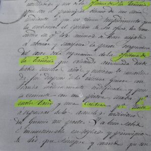 Ítem. Que de la primera escritura resulta haberse hallado presente en la contrata Manuel de Elizondo nuestra parte, participando en los acuerdos, y que si posteriormente lo han excluido del gremio, ha sido por adquirir mayor cantidad de los arriendos, cada uno de los demás individuos, con el pretexto de no ser hijo del pueblo; pues público y notorio en esta villa que entre ellos se han repartido y reparten los productos de dichos arriendos hechos a Beltran Lamarca, porque es cierto y dirán los testigos. Firman el documento el Licenciado Ilundain. Eusebio Goñi procurador. A este documento se presenta una alegación de Lorenzo Bergara, procurador del gremio de “Obra prima” aduciendo una serie de razones a favor de sus representados.